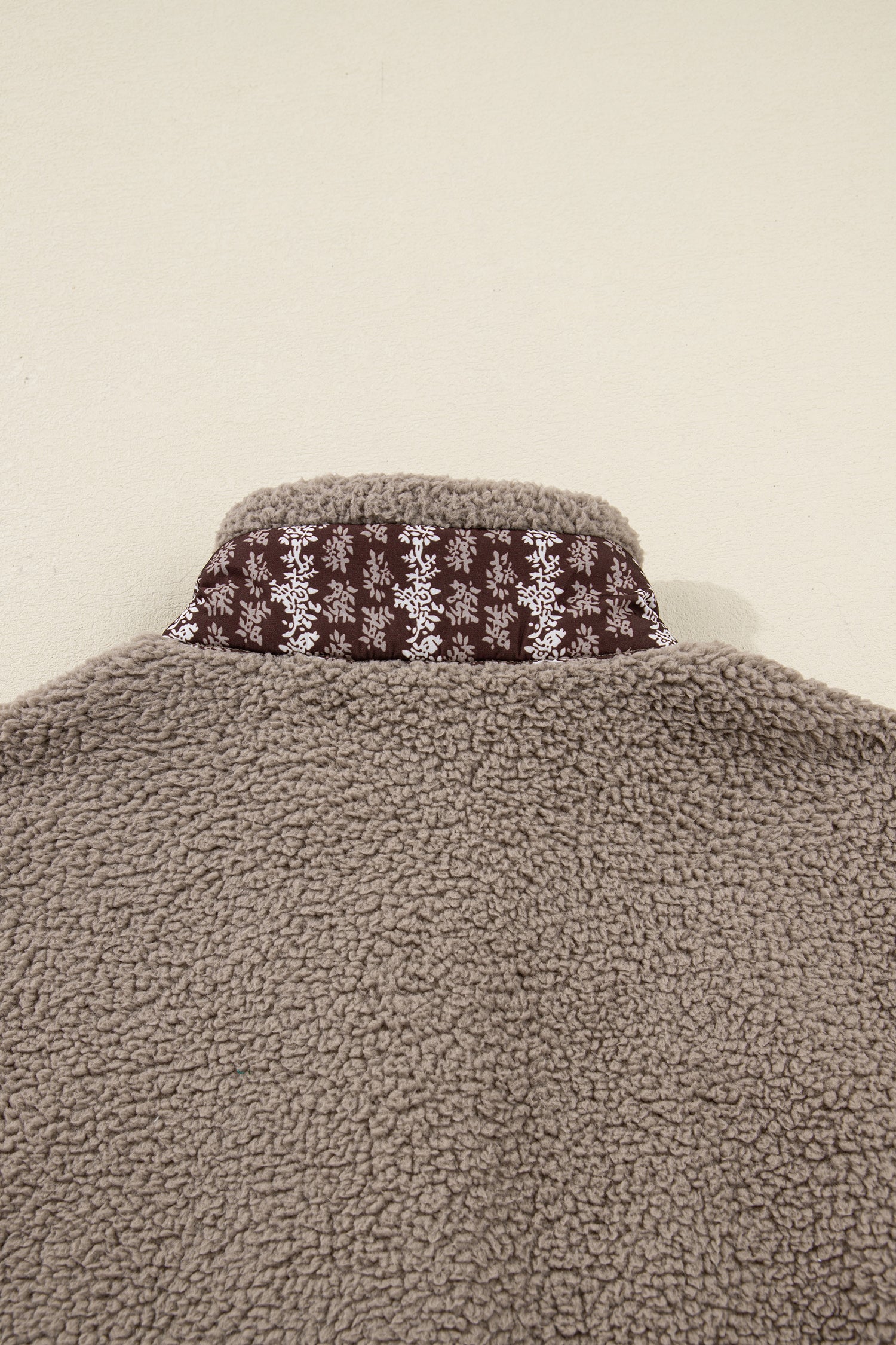 Contrast floral patched trim adds visual interest to this jacket vest.