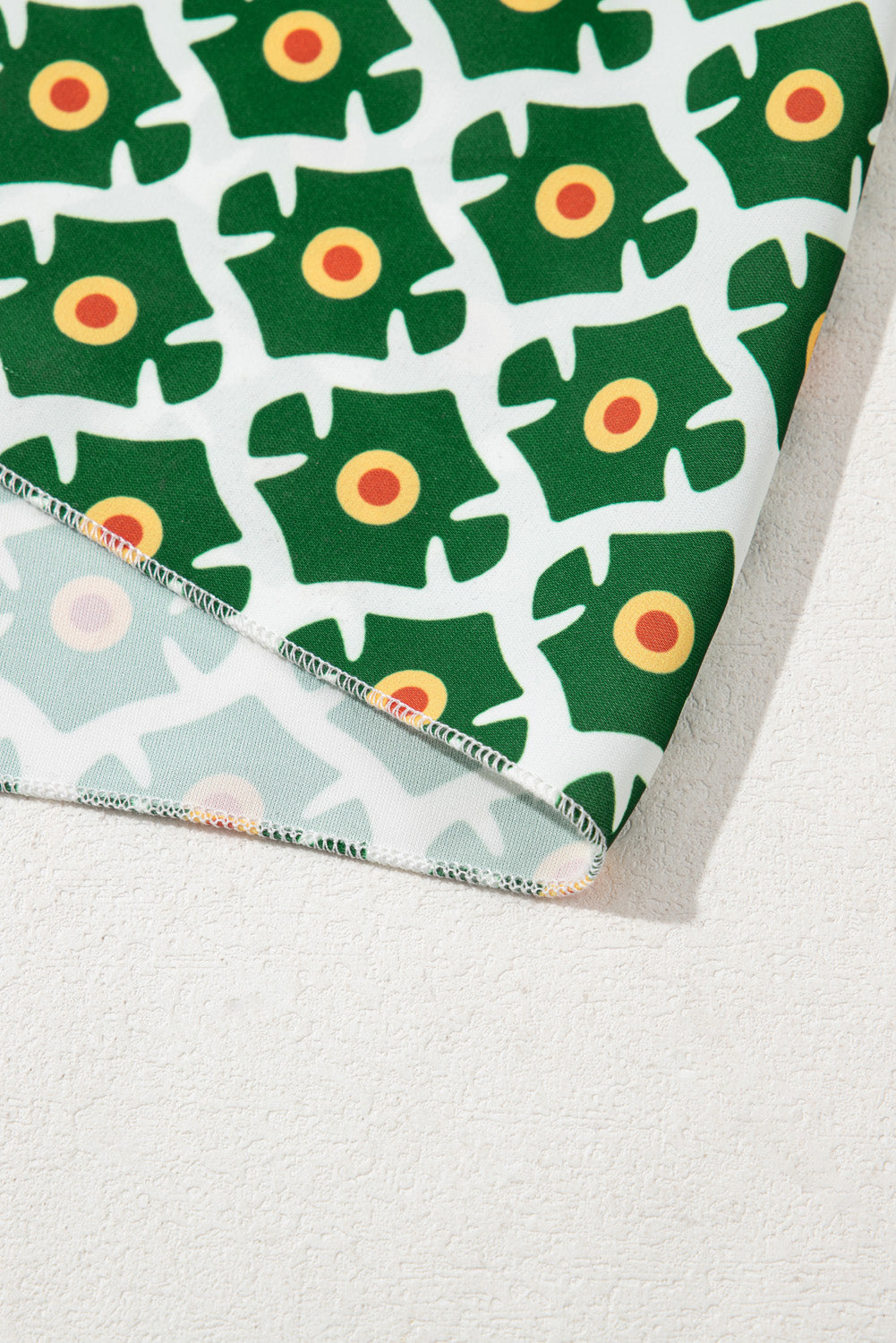 Green Geometric Floral Print Half Sleeve Plus Size Maxi Dress